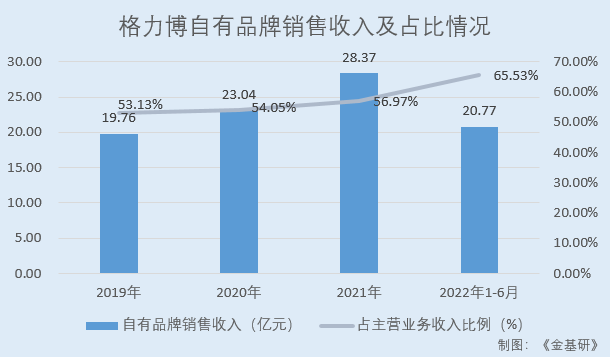 2019-2021年及2022年1-6月,格力博自有品牌銷售收入分別為19.76億元、23.04億元、28.37億元、20.77億元,占主營業(yè)務收入比例分別為53.13%、54.05%、56.97%、65.53%。