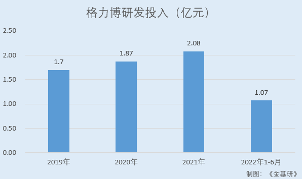 2019-2021年及2022年1-6月,格力博研發(fā)投入分別為1.70億元、1.87億元、2.08億元、1.07億元,占當期營業(yè)收入的比重分別為4.58%、4.35%、4.16%、3.37%。