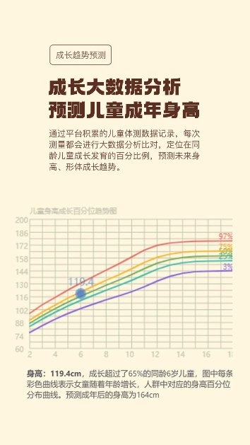 以宅客智能體測儀K2為例,這款是專門為3-17歲以下的青少年兒童定制,更是開展兒童早期發(fā)展評估的專業(yè)設(shè)備。其中身高和體重是衡量兒童成長發(fā)育和營養(yǎng)狀況最重要、最敏感的指標。兒童體格生長的評價應(yīng)有權(quán) 威的標準來做支撐,這樣才能保證評價結(jié)果的科學性和可信性。而對于評價的方法,宅客選用成長趨勢預(yù)測曲線圖,其優(yōu)點是能直觀反映生長水平和變動規(guī)律;計算簡單、曲線光滑、年齡連續(xù),可動態(tài)評價;評價結(jié)果易于解釋和理解,家長容易看懂。