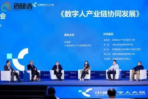 在《數(shù)字人產(chǎn)業(yè)鏈協(xié)同發(fā)展》圓桌對(duì)話環(huán)節(jié)中,大灣區(qū)數(shù)字人產(chǎn)業(yè)聯(lián)盟秘書長邱道勇、 香港知識(shí)產(chǎn)權(quán)交易所主 席吳高林、騰訊研究院高級(jí)研究員宋揚(yáng)、百度智能云資深解決方案工程師張彬、商界傳媒集團(tuán)首席執(zhí)行官周云成、硅基智能聯(lián)合創(chuàng)始人毛麗艷圍繞數(shù)字人展開了產(chǎn)業(yè)鏈、商業(yè)等方面討論。