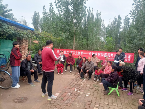 河北威縣,中和農(nóng)信當(dāng)?shù)胤种г诮M織的“助振興村”公益賦能活動,為農(nóng)戶進(jìn)行種植知識培訓(xùn)。