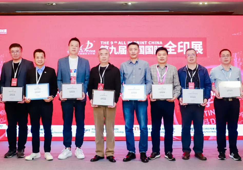 發(fā)布會(huì)最后,現(xiàn)場舉辦了熱烈的第九屆中國國際全印展合作伙伴授牌儀式,為到場的協(xié)會(huì)合作伙伴授牌,第九屆全印展將與全球合作伙伴達(dá)成更有效、更緊密的合作機(jī)制,凝心聚力,共創(chuàng)共贏。