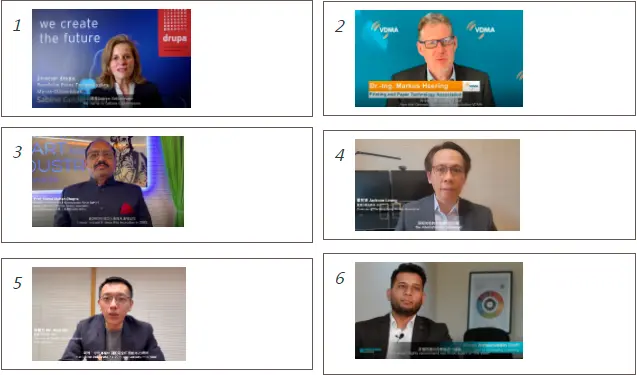 隨著海外市場對中國制造需求的逐步回歸,國內(nèi)外的合作伙伴也通過云端對本次發(fā)布會(huì)表示關(guān)注。drupa展、德國機(jī)械設(shè)備制造業(yè)聯(lián)合會(huì)、印度膠印協(xié)會(huì)、香港印刷業(yè)商會(huì)、香港印藝協(xié)會(huì)、印度專業(yè)媒體Packaging & Labelling通過視頻分享了他們對于全印展的殷殷期望,并表示將繼續(xù)與全印展加深合作,繼續(xù)組織規(guī)模更大的買家團(tuán)前來上海參觀。
