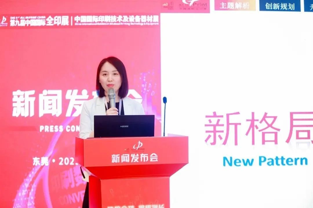 隨后,劉軼平女士在演講中詮釋了第九屆中國國際全印展主題的新內(nèi)涵,并詳細(xì)介紹了展會(huì)的創(chuàng)新規(guī)劃、招展情況、以及各項(xiàng)籌備進(jìn)展。她指出,三年來我們所處的外部環(huán)境已經(jīng)發(fā)生了很大的變化,全印展啟用了更有活力和創(chuàng)意的新版主形象來代表展會(huì)內(nèi)容的精心打磨,但展會(huì)主題仍然沿用“新技術(shù) 新動(dòng)能 新格局”,因?yàn)檫@三個(gè)關(guān)鍵詞隨著行業(yè)的不斷變化,有了更豐富的內(nèi)涵,可以代表全印展最想表達(dá)的印刷全行業(yè)新的趨勢和生態(tài)。2023年恰逢全印展20周年,目前,展會(huì)的各項(xiàng)準(zhǔn)備工作都漸入佳境,全印展必將突破自我,在年末為全球印刷人奉獻(xiàn)一場更高品質(zhì)的“東方盛典”。