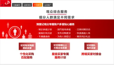 領(lǐng) 先的服務(wù)和全球化的推廣一直是全印展的核心優(yōu)勢,在全球買家的組織和服務(wù)方面,主承辦四方將明確落實(shí)全球化目標(biāo),繼續(xù)發(fā)揮各自優(yōu)勢資源,通過多層級的渠道布局全局發(fā)力。一方面,與海內(nèi)外合作伙伴進(jìn)一步加強(qiáng)交流,提供深度服務(wù),積極響應(yīng)團(tuán)隊(duì)買家的個(gè)性化需求,制定個(gè)性化保障機(jī)制支持團(tuán)隊(duì)買家的組織。另一方面,采用先進(jìn)的專業(yè)展會(huì)渠道和手段,最 大化邀約效果,并針對不同畫像買家提供專業(yè)的個(gè)性化服務(wù)產(chǎn)品。