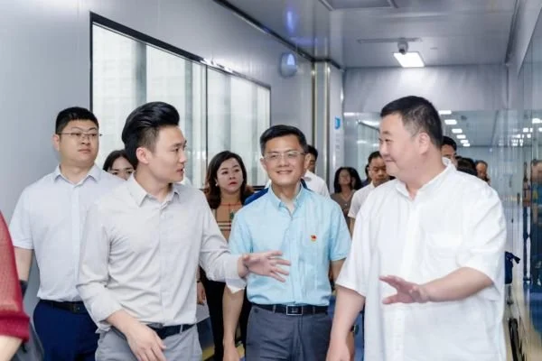 2023年4月19日,英德市工商聯(lián)主 席馬少挺、英德市委統(tǒng)戰(zhàn)部、工商聯(lián)黨組書 記陳武坤及英德企業(yè)家來美思康宸產(chǎn)業(yè)園參觀調(diào)研?;葜莼莩菂^(qū)工商聯(lián)黨組書 記藍(lán)偉健、惠城區(qū)高新科技產(chǎn)業(yè)園黨委專職副書記、紀(jì)委書 記王小龍陪同參觀。美思康宸集團(tuán)園區(qū)總負(fù)責(zé)人程吉峰熱情接待。