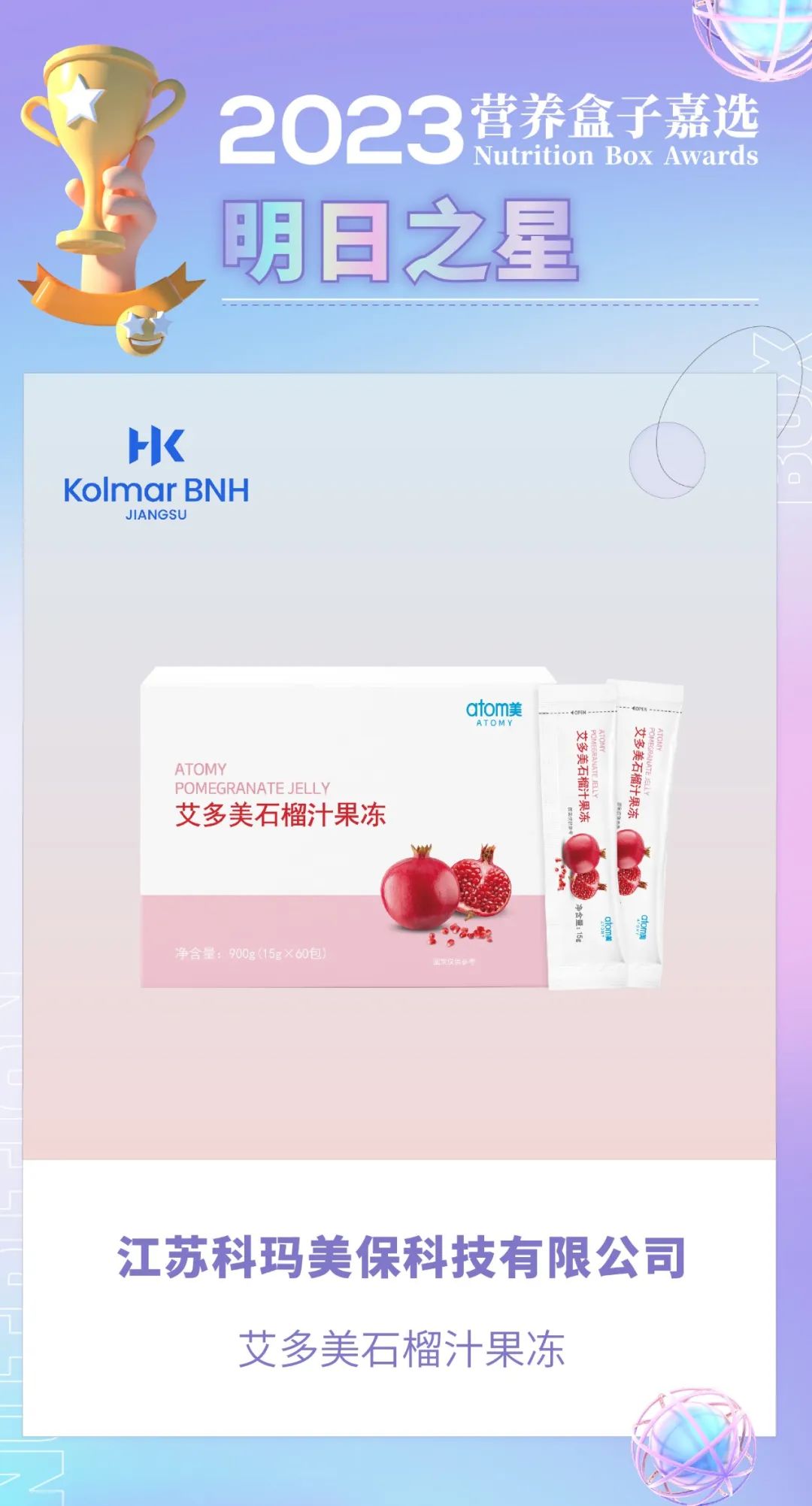 6月7日,第11屆新營(yíng)養(yǎng)大會(huì)暨營(yíng)養(yǎng)盒子頒獎(jiǎng)盛典盛大開幕,艾多美石榴汁果凍入圍2023營(yíng)養(yǎng)盒子嘉選新銳榜單,榮獲“明日之星”大獎(jiǎng)。