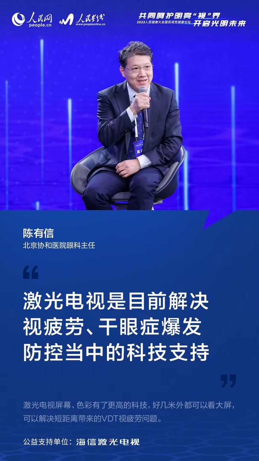 在談及更加護(hù)眼的顯示產(chǎn)品時,北京協(xié)和醫(yī)院眼科主任陳有信對激光電視的護(hù)眼設(shè)計深表認(rèn)可:“激光電視做得非常好,它將光反射到屏幕,而擁有更高科技的屏幕使畫面的色彩、光強(qiáng)度、觀影距離都合適,這種類型的電視及顯示屏是我們目前解決視疲勞、干眼癥爆發(fā)防控當(dāng)中的科技支持。”
