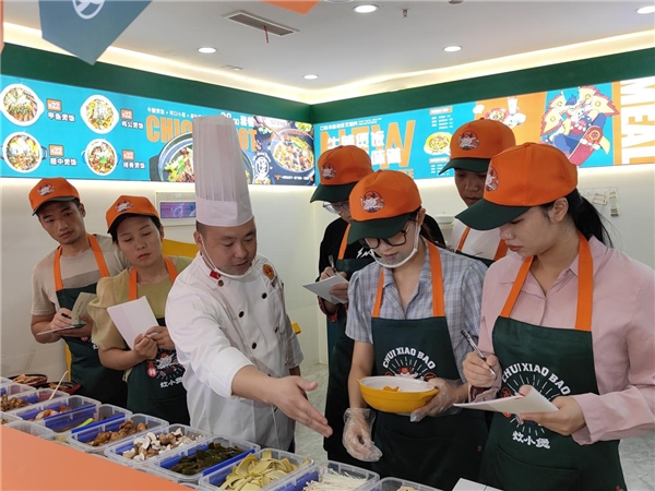 后廚更有專業(yè)的煲飯一體機(jī),自動化的程式早已設(shè)定好了,后廚只需添菜添肉添飯,再倒入總部配送好的醬汁調(diào)味,放入鍋中按下按鍵,就可以坐等美味出鍋了。