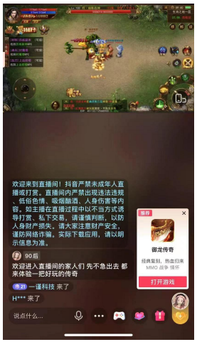 直播產品:《御龍傳奇》,抖音+快手同步快速上線100+個直播間,周維度進行淘汰,優(yōu)秀主播直播運營共同制造,穩(wěn)定直播間流量及人群屬性,首月充值投入即回正。