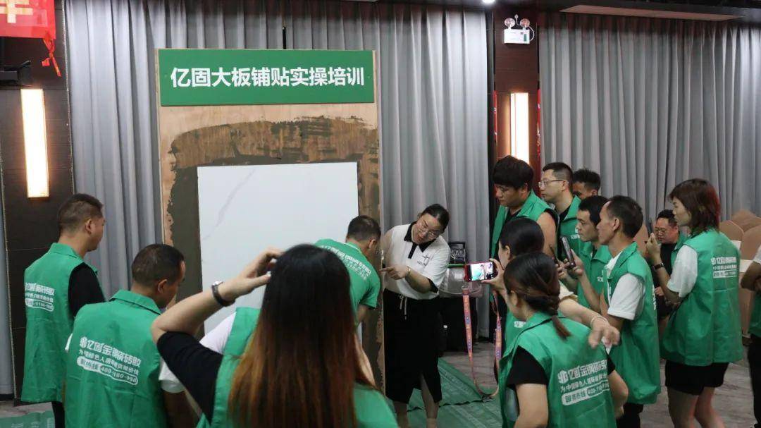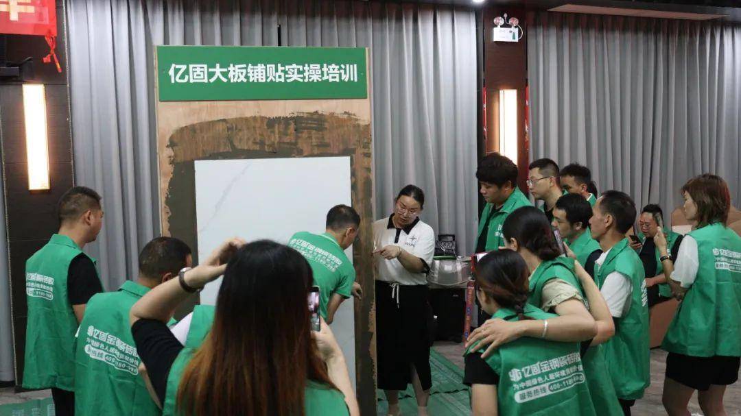 為幫助新晉經(jīng)銷商進一步搶占市場,2023億固集團·首席品牌官特訓營還舉辦一場隆重的鋪貼大賽,在億固大板巖板落地交付首席培訓師團隊的帶領下,四個經(jīng)銷商團隊分組進行大板鋪貼實操。