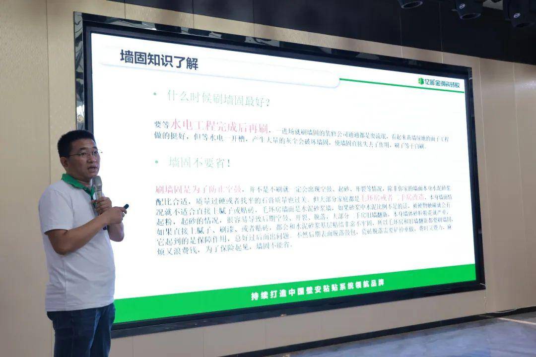 億固集團市場部總監(jiān)楊火平為新晉經(jīng)銷商家人從公司價值觀、愿景、品牌發(fā)展等方面向新商們全面展示了公司的立體品牌形象,同時指出,未來十年億固將由制度驅動轉為文化驅動型企業(yè),強品牌、興文化將是必經(jīng)之路。
