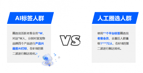 ③能識別出人工運營無法識別的高轉(zhuǎn)化人群。隨機抽取的10**0個會員,同時用平臺標簽,人工做精細化運營篩選,發(fā)現(xiàn)有*00多個人,是無法識別出來的,且這*00多人,有部分為高興趣AI標簽命中。