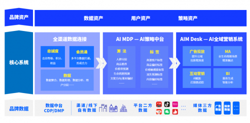 目前,云積天赫已經(jīng)構(gòu)建了完善的消費者運營服務(wù)體系。以品牌數(shù)據(jù)為依托,聚合渠道/ 線下自有數(shù)據(jù)、平臺二方數(shù)據(jù)、媒體三方數(shù)據(jù),為品牌商家提供數(shù)據(jù)中臺CDO/DMP服務(wù)。提供全渠道數(shù)據(jù)連接,包含忠誠度、會員通以及其他數(shù)據(jù)服務(wù)。推出業(yè)界第一款A(yù)I策略中臺(AI MDP),基于算法模型生成AI標簽,開箱即用,助力品牌商家實現(xiàn)AI營銷決策;隨后推出AI全域營銷系統(tǒng),基于廣告投放、MA、互動營銷、BI等功能模塊,實現(xiàn)AI營銷從決策、觸達、分析再到復(fù)盤、算法模型迭代優(yōu)化的全流程。同時為品牌提供AI策略咨詢服務(wù),最終沉淀數(shù)據(jù)資產(chǎn)、用戶資產(chǎn)、策略資產(chǎn)。