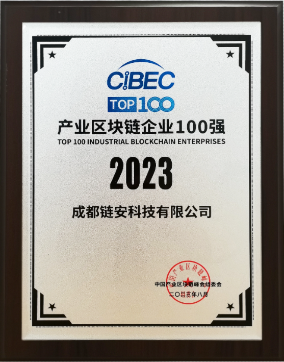 成都鏈安榮獲“2023中國產(chǎn)業(yè)區(qū)塊鏈企業(yè)100強”