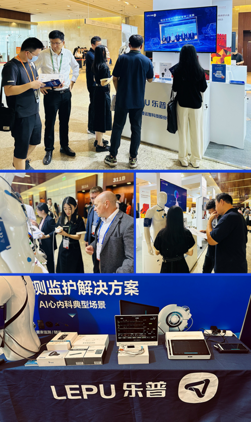 會(huì)議現(xiàn)場(chǎng),樂(lè)普云智帶來(lái)全方位人工智能心電解決方案、AI穿戴式遙測(cè)監(jiān)護(hù)解決方案及智能化醫(yī)療產(chǎn)品展示,吸引眾多與會(huì)者參觀交流。其中,樂(lè)普云智心臟實(shí)時(shí)監(jiān)護(hù)預(yù)警機(jī)心安寶、平板便攜式心電圖機(jī)NeoECG系列、無(wú)線多參數(shù)監(jiān)測(cè)儀M12、動(dòng)態(tài)血壓監(jiān)測(cè)儀KM-7020、 心臟健康手表W20等明星醫(yī)療產(chǎn)品獲在場(chǎng)嘉賓高度關(guān)注!