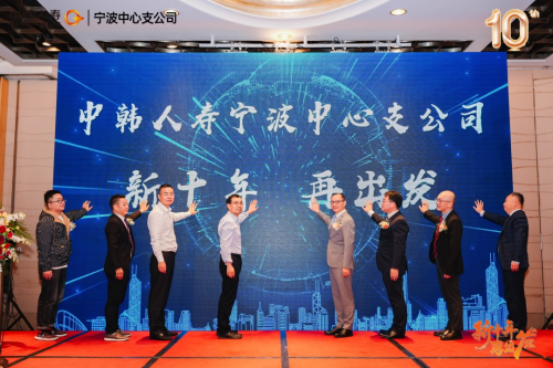 2023年10月27日,中韓人壽保險有限公司寧波中心支公司開業(yè)十周年慶典在寧波隆重舉行,地方相關領 導、合作渠道領 導、總公司相關領 導及中韓寧波中支全體員工齊聚一堂。