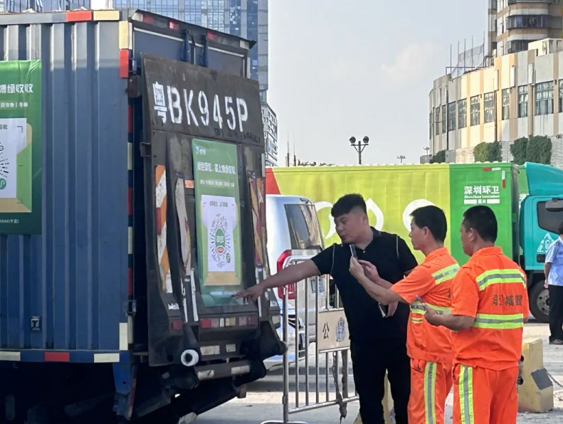 愛博綠深圳分揀中心的負(fù)責(zé)人于得軍為環(huán)衛(wèi)工人介紹“以車代庫”的回收路徑,除了現(xiàn)場投廢之外,環(huán)衛(wèi)工人亦可掃描二維碼下單或通過支付寶或微信搜索【博綠收收】小程序來在線登記、預(yù)約回收。