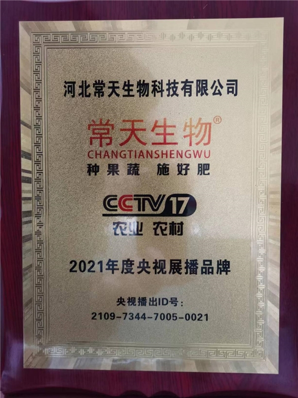近日,河北常天生物科技有限公司榮獲央視展播,以提升國產(chǎn)品牌在公眾心中的影響力,打造優(yōu)選國產(chǎn)品質(zhì),實(shí)現(xiàn)品牌價(jià)值和促進(jìn)自身發(fā)展。