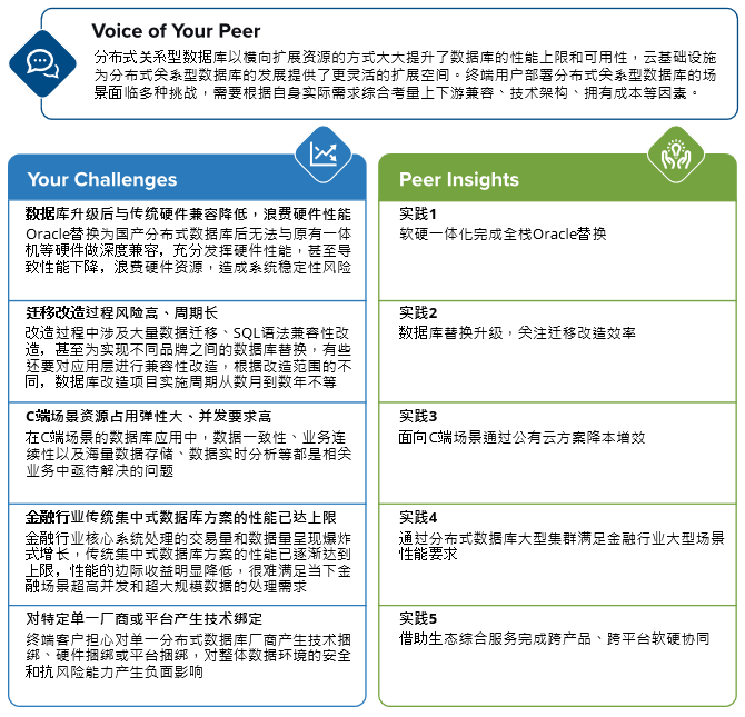 ▲ IDC PeerScape: 分布式關(guān)系型數(shù)據(jù)庫應(yīng)用挑戰(zhàn)與同業(yè)洞察
