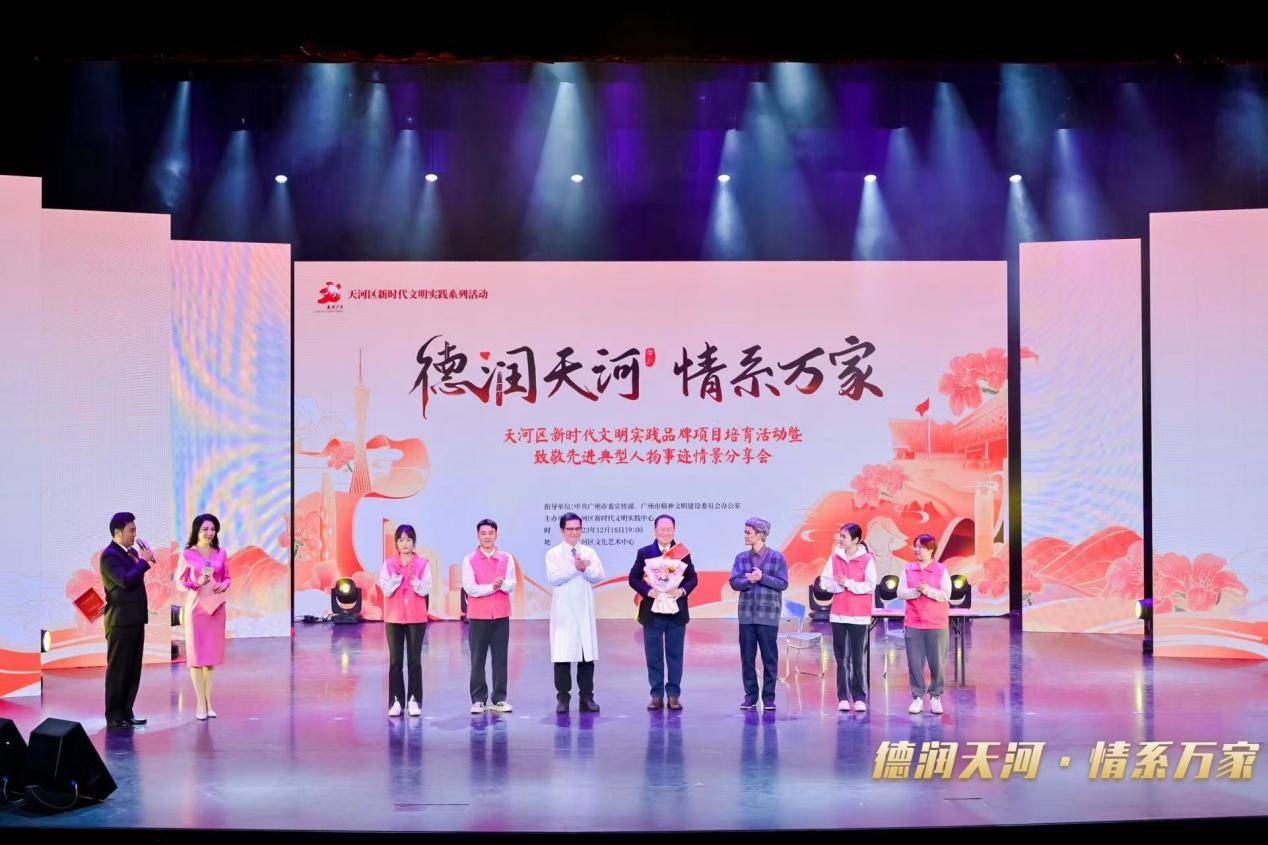 12月18日晚7:30,“德潤(rùn)天河 情系萬(wàn)家”天河區(qū)新時(shí)代文明實(shí)踐品牌項(xiàng)目培育活動(dòng)暨致敬先進(jìn)典型人物事跡情景分享會(huì)如期而至,在天河區(qū)新時(shí)代文明實(shí)踐中心(天河區(qū)匯彩北路8號(hào))舉辦。從天河選樹培育的時(shí)代楷模徐克成、中國(guó)好人李森等先進(jìn)典型模范代表親臨現(xiàn)場(chǎng),省文明辦、省文聯(lián)、市委宣傳部、羊城晚報(bào)、廣汽集團(tuán)等單位,以及關(guān)心和支持天河區(qū)各項(xiàng)事業(yè)發(fā)展的各級(jí)領(lǐng) 導(dǎo)、企事業(yè)單位代表,奮戰(zhàn)在天河區(qū)精神文明建設(shè)一線的骨干力量近500人參加分享會(huì),共同聆聽先進(jìn)事跡、感受榜樣力量。