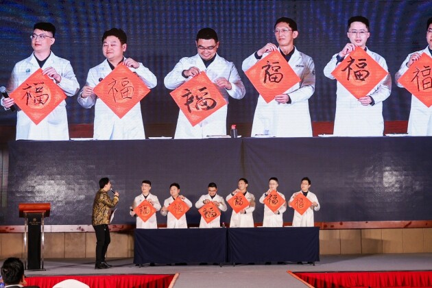 答謝會(huì)上,柏樂(lè)口腔醫(yī)生代表團(tuán)們上臺(tái)用一筆一劃寫(xiě)下了充滿祝福與口福寓意的“?!弊?,他們亮出的“?!弊旨茨哿税貥?lè)最中堅(jiān)的口腔齒藝力量,也是柏樂(lè)口腔致力于用自己的雙手成就大家的好口福的初心,希望每一位客戶揚(yáng)起的嘴角都是完美的弧線。柏樂(lè)口腔精進(jìn)不止,堅(jiān)定前行地守護(hù)著每位客戶口腔健康的希望,讓所有的客戶因?yàn)橛辛税貥?lè),生活更美好。