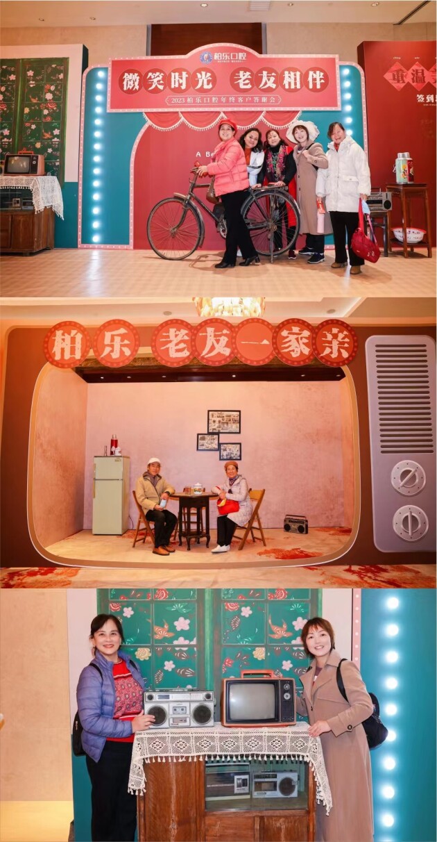 答謝會(huì)上柏樂(lè)口腔圍繞著感恩老友的主旨,以叔叔阿姨們風(fēng)華正茂的時(shí)代背景與70-80的經(jīng)典潮流為方向,力求真實(shí)完美的還原出那些充滿回憶與情懷的場(chǎng)景,讓柏樂(lè)的老友們沉浸在那些喜悅溫馨溫暖熟悉的氛圍里。柏樂(lè)口腔精心打造了復(fù)古年代主題合影、傳統(tǒng)非遺文化甲骨文體驗(yàn)、好運(yùn)刮刮樂(lè)、游戲贏糧票、南寧-桂林-貴陽(yáng)三地地道美食傳統(tǒng)名小吃品鑒等極具特色的主題活動(dòng)區(qū),帶著柏樂(lè)老友們一起吃喝玩樂(lè),吃嘛嘛香,笑口常開(kāi)。不少老友爭(zhēng)相熱情拍照,品鑒美食,在結(jié)束時(shí)表示這樣的活動(dòng)讓人意猶未盡,回味無(wú)窮。