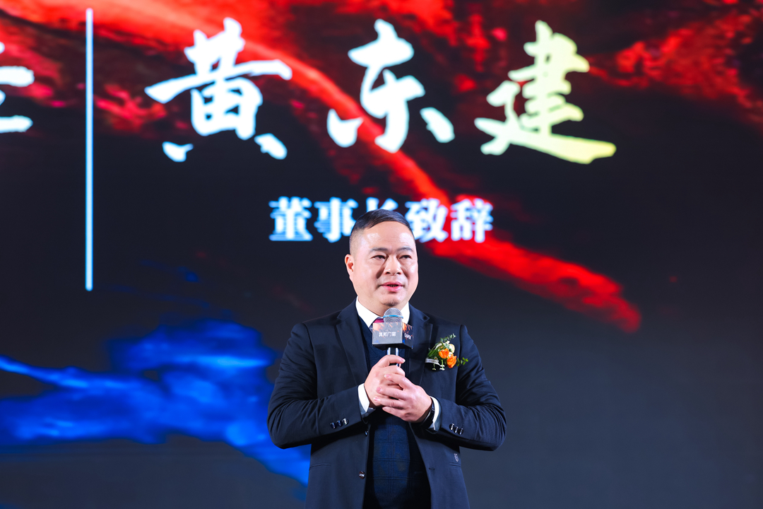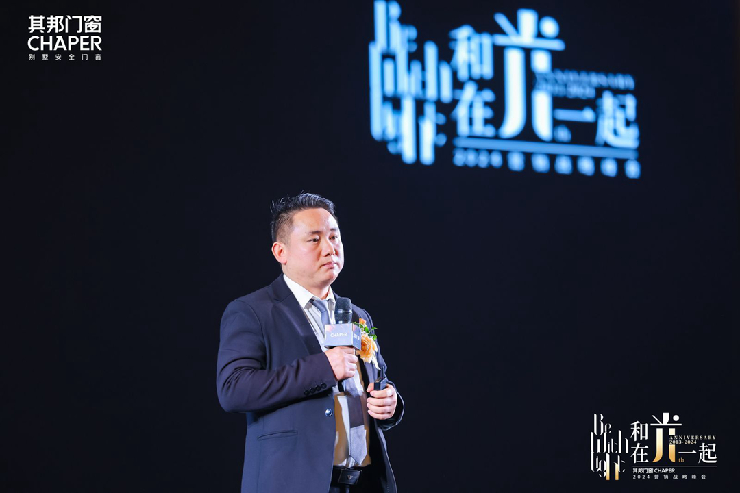 會議伊始,由其邦門窗董事長黃東建致辭拉開序幕。一束光從暗黑中落下,黃董在臺上深情哽咽回憶并娓娓道來。在其邦門窗走過11個年頭的過往點滴,自己既是丈夫、是父親、也是追光人??v然創(chuàng)業(yè)之路不好走,錯過了許多陪伴家人的時間,但每當想起所有創(chuàng)業(yè)伙伴們,想起大家共同努力獲得美好的成果,那么一切再苦再累也值得。