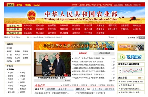 農(nóng)業(yè)部門戶網(wǎng)站的前身是中國農(nóng)業(yè)信息網(wǎng),它建立于1996年,是第一個(gè)建立并接入國際互聯(lián)網(wǎng)的中央國家部委網(wǎng)站。