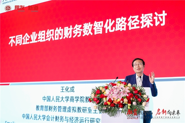 中國人民大學(xué)商學(xué)院教授、全國會計專業(yè)學(xué)位研究生教育指導(dǎo)委員會副主任王化成以“不同企業(yè)組織的財務(wù)數(shù)智化路徑探討”為題聚焦企業(yè)進化過程的點線面網(wǎng)、價值網(wǎng)平臺的財務(wù)數(shù)智化、大企業(yè)集團的財務(wù)數(shù)智化、中小型企業(yè)的財務(wù)數(shù)智化四個方面進行演講。王化成表示,不同的企業(yè)組織形式,演化出不同的戰(zhàn)略和商業(yè)模式,也產(chǎn)生了不同的財務(wù)管理,正確理解企業(yè)組織的演進和發(fā)展,是探索會計、審計和財務(wù)發(fā)展脈絡(luò)的根基,也是預(yù)測未來發(fā)展方向的出發(fā)點。他指出,平臺型組織可以概括為在線化、數(shù)據(jù)化、智能化、業(yè)財融合。從世界范圍內(nèi)來看,價值網(wǎng)平臺型組織已經(jīng)率先實現(xiàn)了數(shù)智化轉(zhuǎn)型和業(yè)財融合。隨后,他以開灤集團為例詳細介紹了大企業(yè)集團的財務(wù)數(shù)智化過程和內(nèi)容。