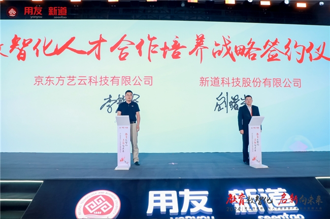 2024年,新道科技將與院校持續(xù)深化產(chǎn)教融合,共推教育高質(zhì)量發(fā)展。會議期間,新道科技與多家院校舉行校企合作戰(zhàn)略簽約儀式。同時,新道科技與京東方藝云科技有限公司舉行戰(zhàn)略簽約儀式,雙方將充分發(fā)揮各自優(yōu)勢,深化產(chǎn)教融合,構(gòu)建校企協(xié)同育人新格局。