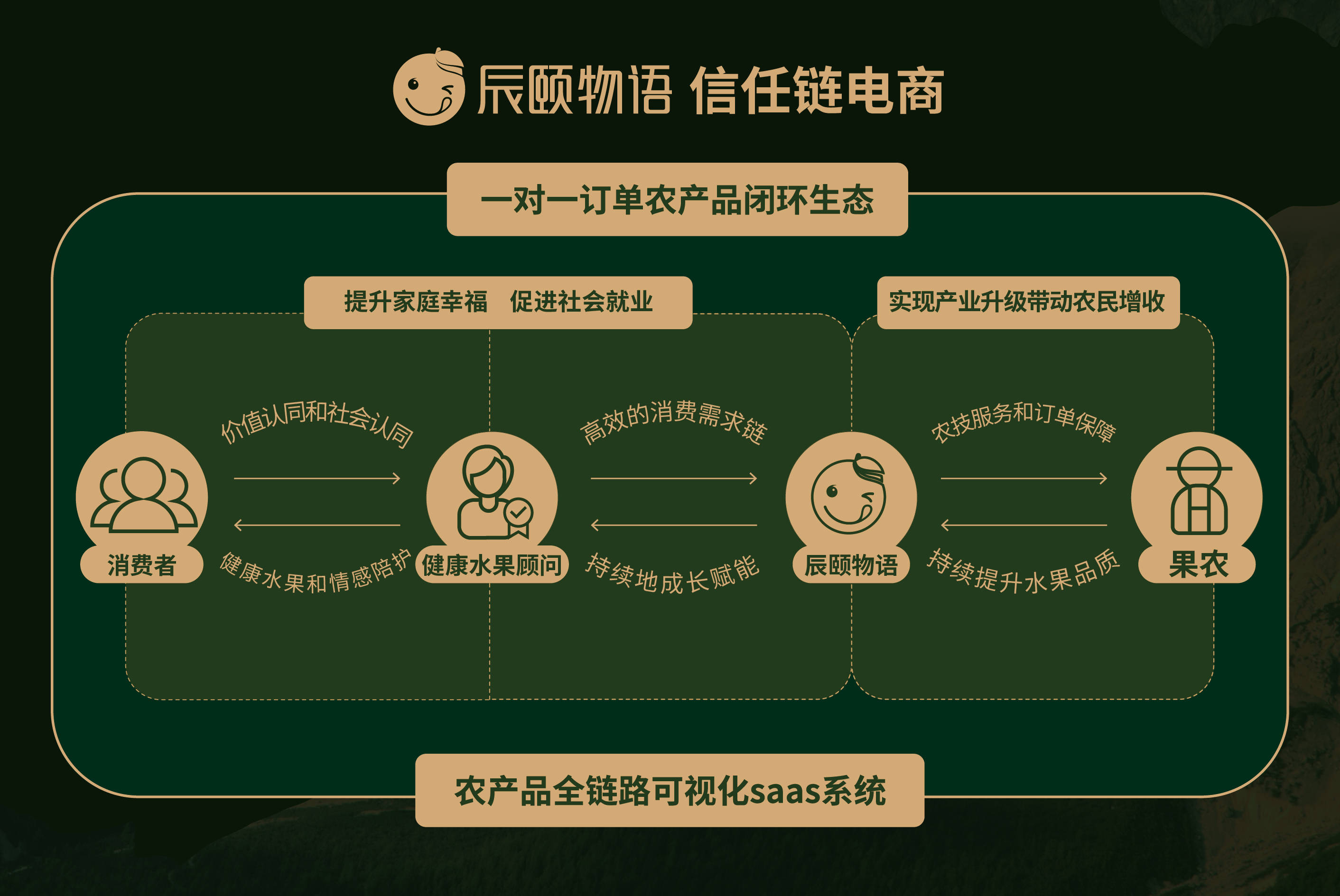 辰頤物語,堅(jiān)守公益助農(nóng)為文化基因,踐行鄉(xiāng)村振興戰(zhàn)略,切實(shí)帶動(dòng)果農(nóng)增收。