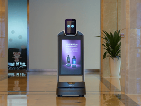在商場、寫字樓里,豹小秘Plus是亮眼的品牌宣傳大使。它游走在樓道里,27英寸的超清大屏可以清晰地展示美圖、抖音、快手等各類視頻和多種廣告形式。在識別到顧客時,豹小秘Plus還能主動上前招攬客人,幫助商家隨時隨地進(jìn)行動態(tài)宣傳。