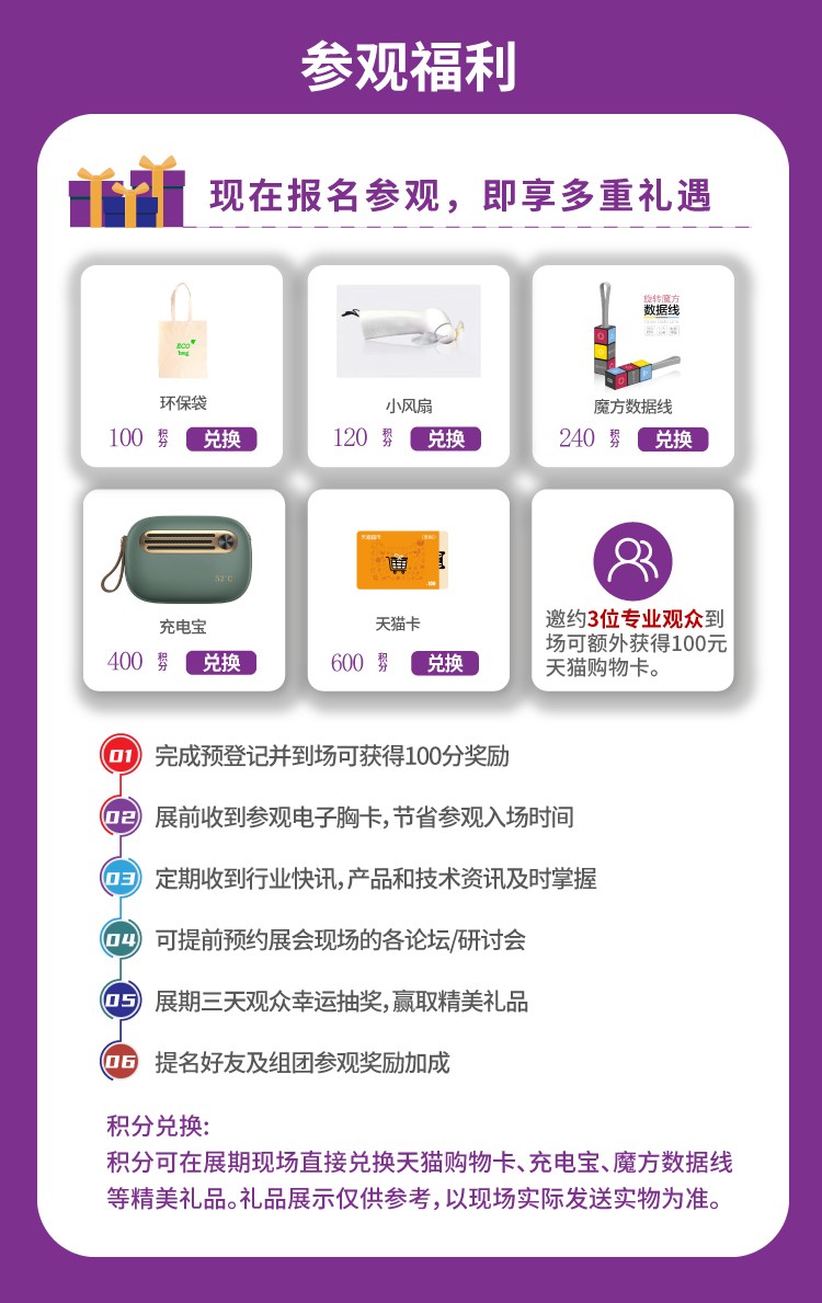 注:積分可在展期現(xiàn)場(chǎng)直接兌換天貓購(gòu)物卡、充電寶等精美禮品。