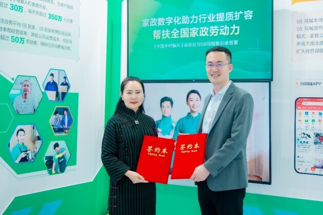 4月28日,在2023年首屆家政博覽會上,中國領 先的生活服務平臺58同城與《中國鄉(xiāng)村振興》雜志社在北京簽署合作備忘錄 。據(jù)悉,58同城將充分發(fā)揮平臺在生活服務和就業(yè)幫扶領域的資源和品牌優(yōu)勢,與《中國鄉(xiāng)村振興》雜志社聯(lián)合實施多項家政行業(yè)勞務人員幫扶計劃,幫助更多勞動者解決就業(yè)問題、提高收入,進一步以實際行動踐行社會責任。