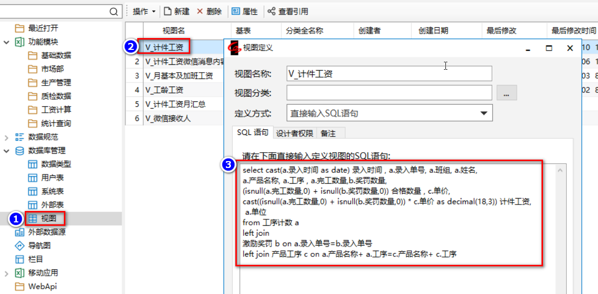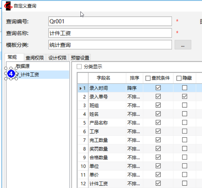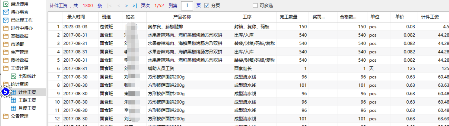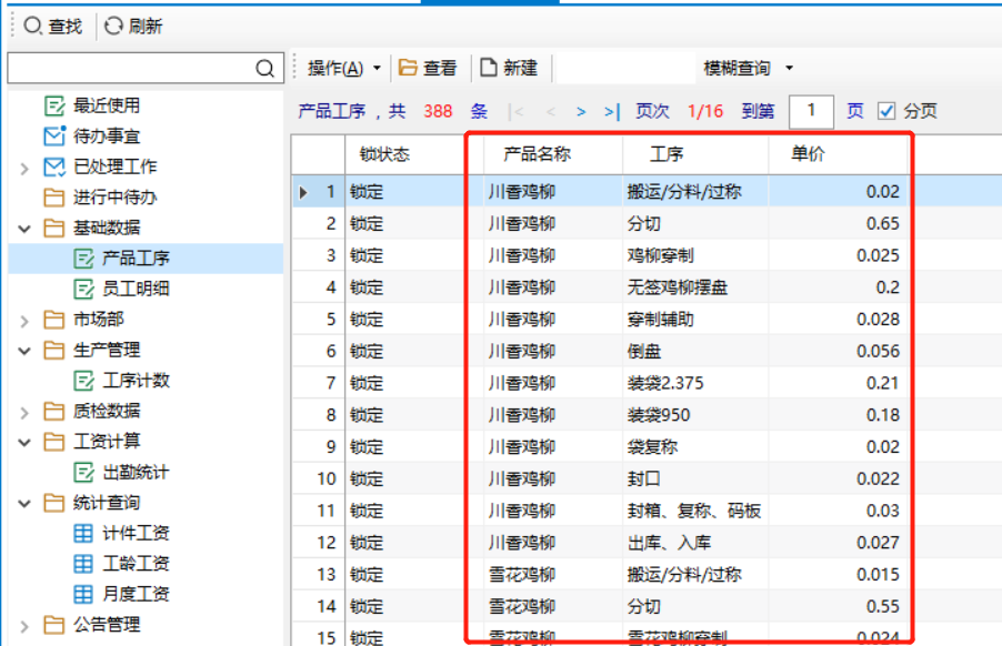 這個步驟系統(tǒng)自動完成,只要上一步錄入完工數(shù)量,計件工資自動更新,其邏輯是通過一個視圖把完工數(shù)量和第 一步錄入的工序工價關(guān)聯(lián)起來,在系統(tǒng)數(shù)據(jù)庫視圖里面完成計算,并通過一個自定義報表展現(xiàn)出來。