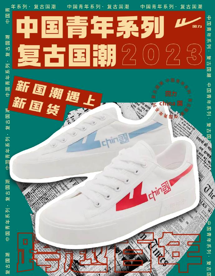 除了品牌的主動營銷,回力設(shè)計也吸引了一大批時尚達人的自發(fā)分享,包括楊冪、劉雯等明星,日常穿搭中都經(jīng)常出現(xiàn)回力的身影。而得到潮流年輕人的廣泛青睞,離不開回力的國潮風設(shè)計?;亓⒅袊鴤鹘y(tǒng)文化當中充滿濃郁國風的國潮元素,融入現(xiàn)代的簡約設(shè)計,展示了老牌國貨的原創(chuàng)設(shè)計能力。比如最近的“中國青年系列”,回力就將“中國”的文字元素融入品牌標識的設(shè)計中,新國潮遇上新國貨,演繹了一場跨越百年的文化傳承。
