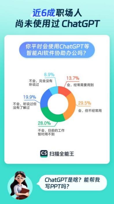 近期熱門的ChatGPT討論度很高,大多數(shù)人認為AI的自動寫文案、寫代碼、寫論文、文案翻譯等能力幫助職場人降低產(chǎn)出壓力。但令人意外的是,近6成職場人表示自己尚未使用過ChatGPT?!秷蟾妗凤@示,文檔筆記類工具軟件使用者多,接近6成;超過30%的受訪者用過日程管理類軟件。