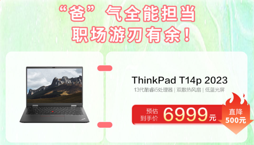 作為職場辦公的主力裝備,一款趁手的辦公電腦必不可少。聯(lián)想ThinkPad T14p 2023擁有13代酷睿i5處理器,雙散熱風(fēng)扇及低藍(lán)光屏,此次直降500元,到手僅6999元。