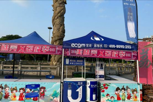 本次在大嶺山舉辦的荔枝節(jié)除了圍繞“音樂(lè)狂歡”、“燒鵝派兌”、“城市露營(yíng)”、“創(chuàng)意集市”、“莞荔天團(tuán)漢服秀”等大嶺山鎮(zhèn)本土文化活動(dòng)外。在會(huì)場(chǎng)也呈現(xiàn)了一些新的產(chǎn)品,尤其是由東莞市廣美食品飲料有限公司出品的“宜純蒸餾水”引起了市民的注意,閃亮出圈。