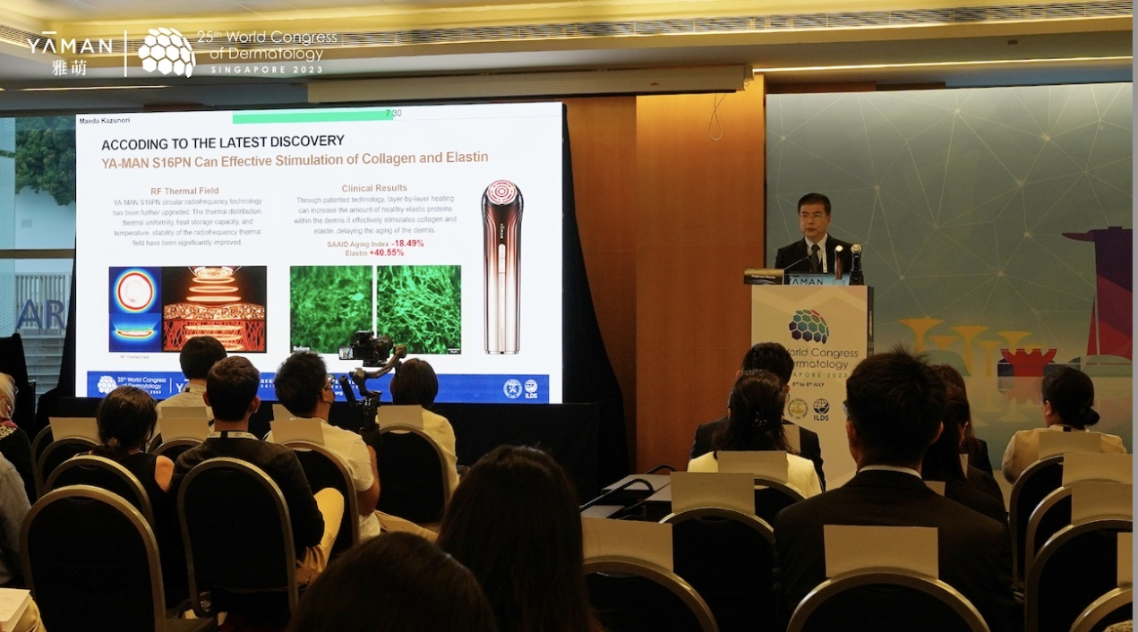 在7月5日舉辦的聚焦家用美容儀研究和應(yīng)用探討的衛(wèi)星會(huì)上,北京大學(xué)第 一醫(yī)院皮膚科吳艷教授做了“皮膚科醫(yī)生眼中的家用美容儀”的主題分享,以雅萌過去幾年在中國(guó)市場(chǎng)的醫(yī)研共創(chuàng)研究成果為案例與現(xiàn)場(chǎng)來自全球180多個(gè)國(guó)家的上萬名皮膚學(xué)權(quán) 威專家、醫(yī)師代表共同交流家用美容儀與皮膚學(xué)的關(guān)系,對(duì)皮膚學(xué)的價(jià)值和意義;雅萌首席技術(shù)官前田一憲也分享了雅萌家用美容儀技術(shù)革新與醫(yī)研成果,并與專家們交流了雅萌基于皮膚學(xué)的基礎(chǔ)研究,研發(fā)的家用美容儀新技術(shù)成果。