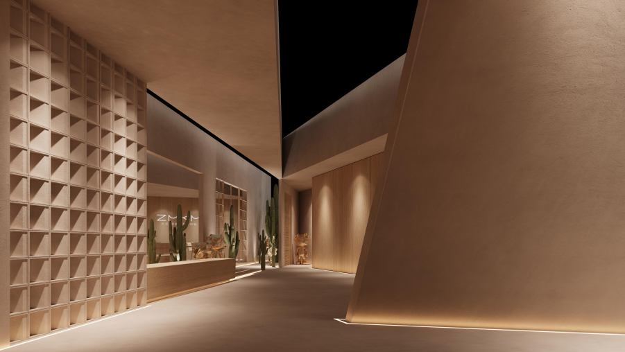 除了在加盟扶持方面帶來(lái)驚喜外,展會(huì)現(xiàn)場(chǎng),ZMKM將以“沙漠綠洲”為展會(huì)主題,以土黃、綠、木色為主要色調(diào),利用沙子、仙人掌、木紋護(hù)墻、木紋產(chǎn)品、斑駁的藝術(shù)、漆肌理、定制紋理地板、偏暖的燈光、定制數(shù)碼打印板等元素設(shè)計(jì),弱化行業(yè)屬性讓空間給參觀者帶來(lái)思考,進(jìn)而成為品牌跳圈的形象和載體,成功將ZMKM全屋門系統(tǒng)展示,讓觀展用戶便于住家式體驗(yàn)極簡(jiǎn)門的設(shè)計(jì)、安全等優(yōu)勢(shì)。