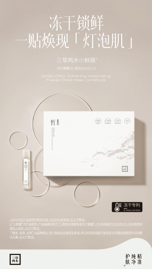 肌膚暗沉、瑕疵和后續(xù)護膚品難吸收的問題往往是角質(zhì)層無法正常代謝。當角質(zhì)層無法正常脫落時,肌膚會出現(xiàn)晦暗無光、干燥脫屑等問題,嚴重影響后續(xù)護膚品的吸收能力。三草兩木小鮮膜,凍干鎖鮮,直擊暗沉本源,剝落老廢角質(zhì)層,為肌膚帶來明亮透亮的“燈泡肌”效果。