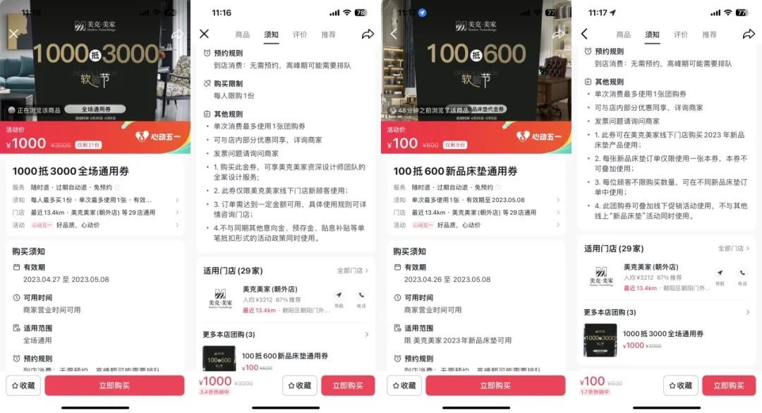 作為一個(gè)定 位高端的家居品牌,美克美家對(duì)自己的客戶人群有清晰的認(rèn)知,在直播選品上不以數(shù)量為標(biāo)準(zhǔn),而是聚焦核心顧客,通過高額意向金篩選顧客意向,以「專屬、爆品」策略為核心,借勢(shì)“美克美家品牌軟裝節(jié)”活動(dòng),打造抖音本地團(tuán)購直播間專屬優(yōu)惠福利,并且與線下門店優(yōu)惠活動(dòng)同享。以線上“云逛店”實(shí)景直播互動(dòng)充分了解客戶需求,進(jìn)而邀請(qǐng)客戶進(jìn)入線下門店場(chǎng)景體驗(yàn)一站式服務(wù),實(shí)現(xiàn)從需求引導(dǎo)到交易完成的閉環(huán)。