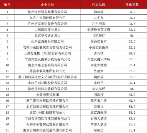 2021-2022年50家“正餐領跑企業(yè)”排名第14位