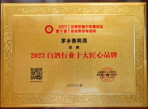 貴州茅臺酒廠(集團)保健酒業(yè)公司旗下品牌《茅鄉(xiāng)酒善將》2023中國白酒行業(yè)十大匠心品牌