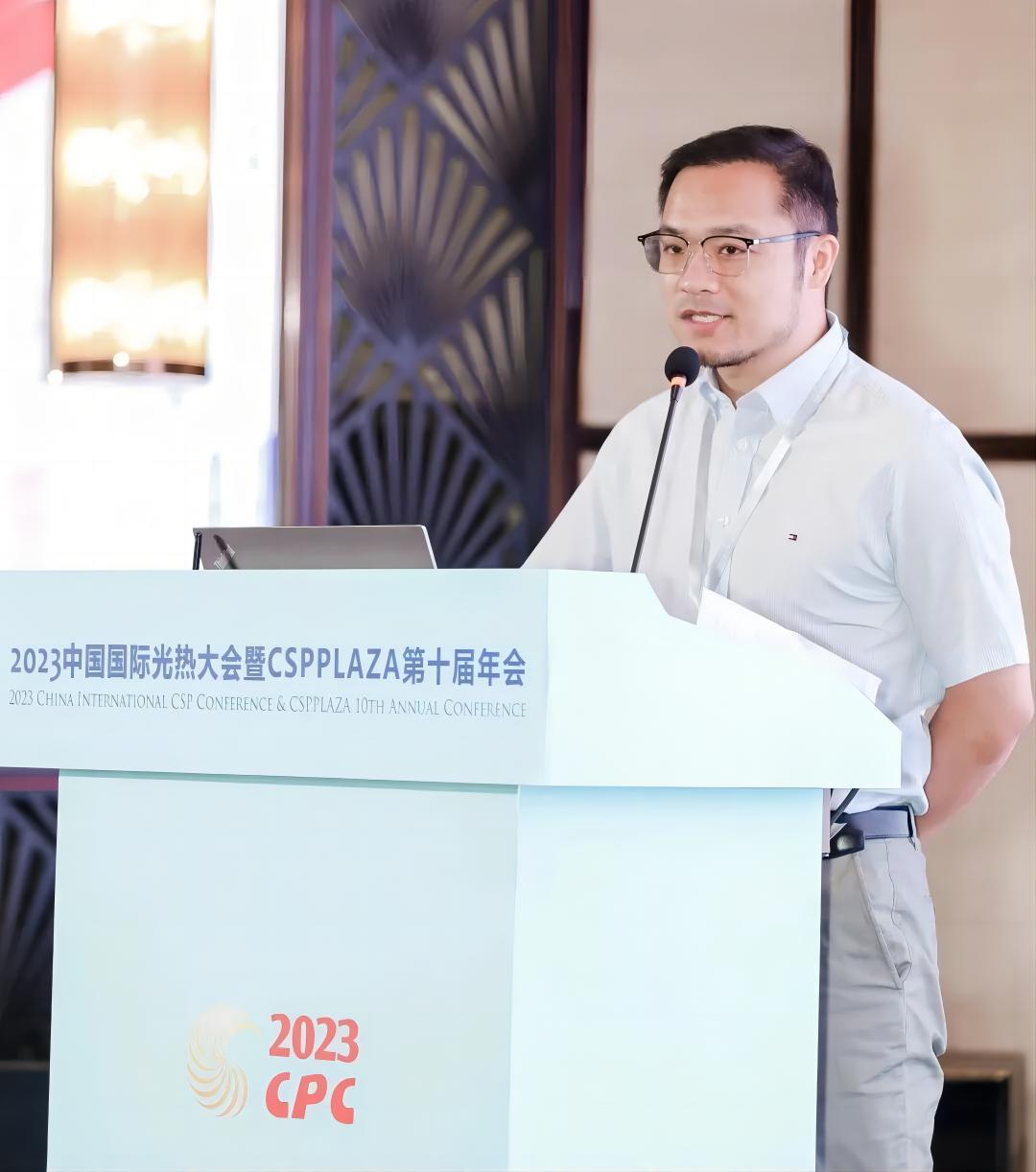 華源前線副總經(jīng)理孫田津就自主研發(fā)全球首創(chuàng)的“超高溫、大功率電極式熔鹽加熱及儲熱技術(shù)解決方案”發(fā)表主題演講。