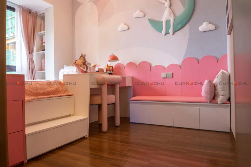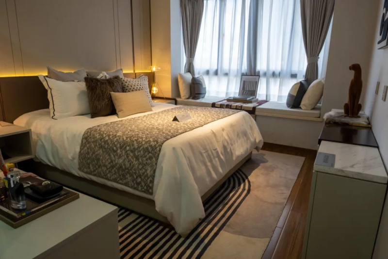 地面通鋪冠珠仿古木紋磚,搭配出多元化的臥室設(shè)計,產(chǎn)品兼具耐磨、耐刮、防滑的特性,在美學(xué)之外增加實用保障。
