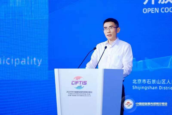 ??北京市石景山區(qū)委副書 記、區(qū)長李新在主題發(fā)言中詳細的介紹了石景山近一階段的發(fā)展成果和高質(zhì)量打造國際開放合作區(qū)的相關(guān)規(guī)劃部署。他談到,石景山區(qū)緊抓“兩區(qū)”建設的重大機遇,產(chǎn)業(yè)開放積蓄新動能,虛擬現(xiàn)實、人工智能產(chǎn)業(yè)、工業(yè)互聯(lián)網(wǎng)在不斷吸聚優(yōu)秀的企業(yè),中國VR50強已經(jīng)有14家落戶石景山,中科協(xié)科幻產(chǎn)業(yè)中心、元宇宙未來研究院等產(chǎn)業(yè)平臺也相繼落戶。首鋼園北區(qū)也吸引了騰訊、百度、航天八院、探月中心、航天科工智能院等超過200家優(yōu)質(zhì)企業(yè)和機構(gòu)入駐,已經(jīng)形成“科技+”、“體育+”產(chǎn)業(yè)集聚生態(tài)。國際開放合作區(qū)將突出承接服貿(mào)會的溢出效應,與服貿(mào)會九個專題展一體化聯(lián)動,為國內(nèi)外優(yōu)質(zhì)服務業(yè)企業(yè)落戶北京提供全方位的服務,著力打造服貿(mào)會溢出聯(lián)動區(qū),服務業(yè)國際合作示范區(qū),兩區(qū)建設攻堅區(qū),老工業(yè)基地轉(zhuǎn)型樣板區(qū)和綠色低碳發(fā)展的特色區(qū)。