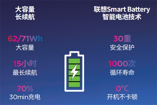問到筆記本電腦什么牌子好時(shí),續(xù)航力也是被高度關(guān)注的一個(gè)因素,聯(lián)想昭陽X7至高可配置71Wh大容量電池,續(xù)航時(shí)間最 高達(dá)15小時(shí),出差在外一整天也不用擔(dān)心電腦電量不足。即使關(guān)鍵時(shí)刻電量告急,借助聯(lián)想昭陽X7的快充技術(shù),筆記本最 快可以在半小時(shí)內(nèi)充滿70%的電量,一頓午飯的時(shí)間就能讓筆記本電腦恢復(fù)“作戰(zhàn)狀態(tài)”,令人安全感滿滿。